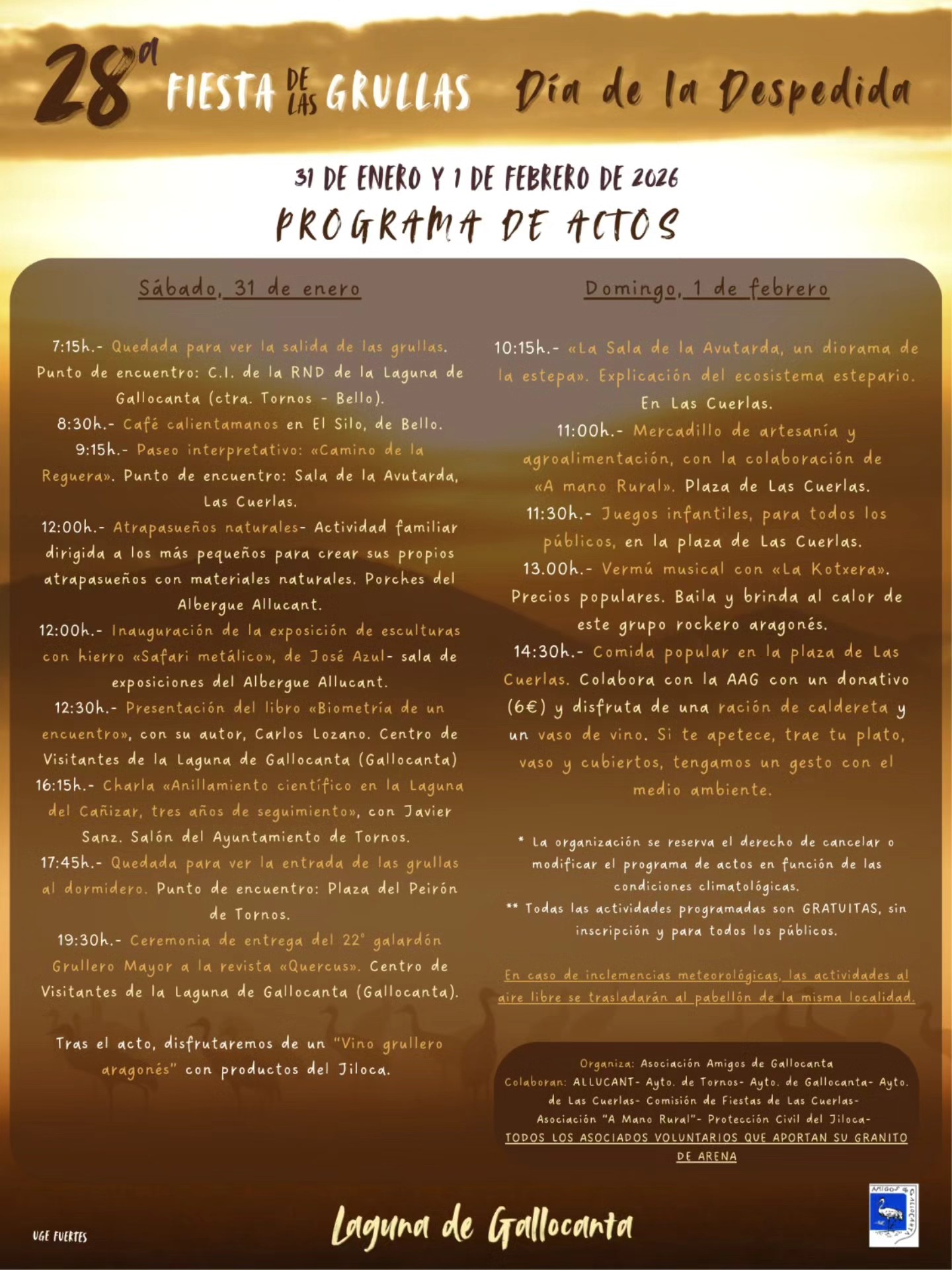programa Fiesta de Despedida de las Grullas